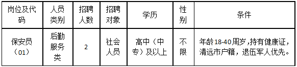 清遠(yuǎn)市清城區(qū)機(jī)關(guān)事務(wù)管理局因工作需要,根據(jù)《關(guān)于印發(fā)<清遠(yuǎn)市清城區(qū)機(jī)關(guān)事業(yè)單位專(zhuān)項(xiàng)工作聘員、合同制聘員以及后勤服務(wù)類(lèi)人員管理辦法>的通知》(城區(qū)人社〔2022〕20號(hào))文件精神,面向社會(huì)公開(kāi)招聘后勤服務(wù)類(lèi)人員2名,現(xiàn)將有關(guān)事宜公告如下: