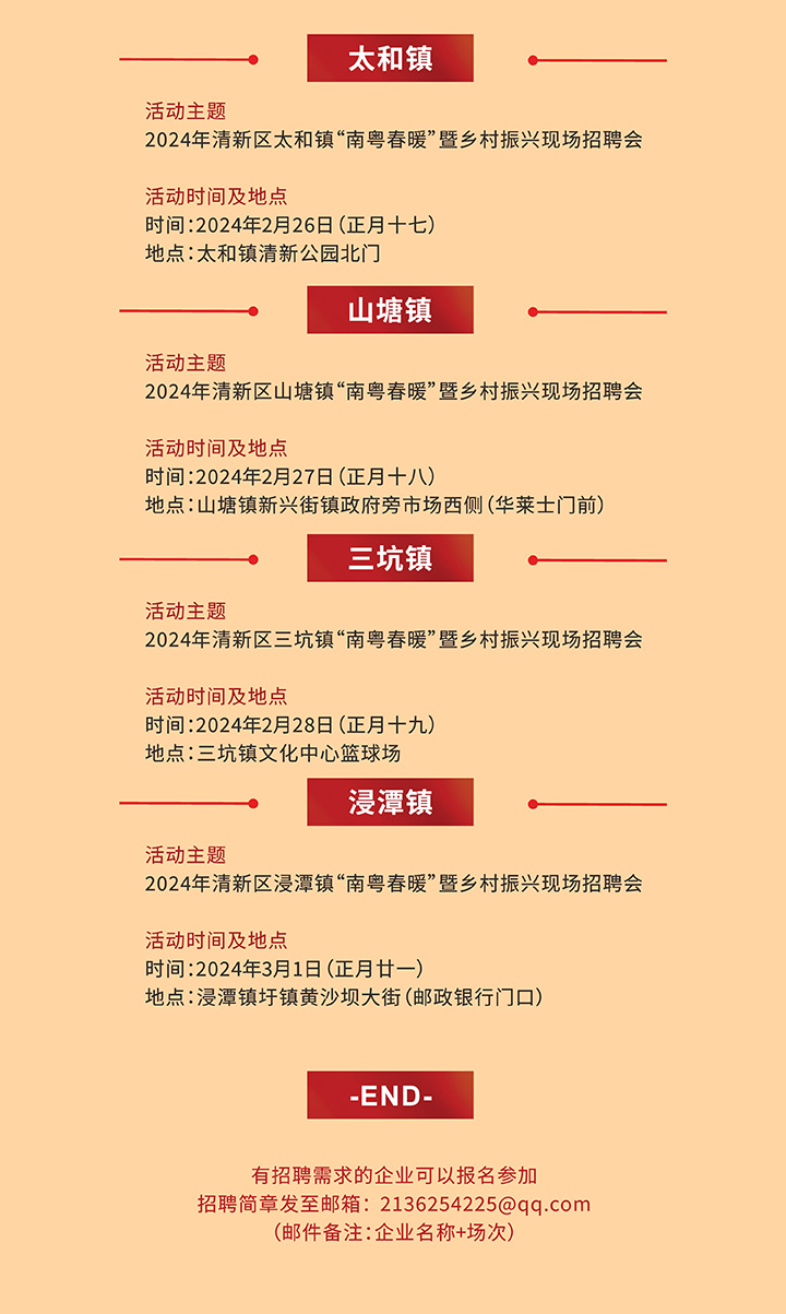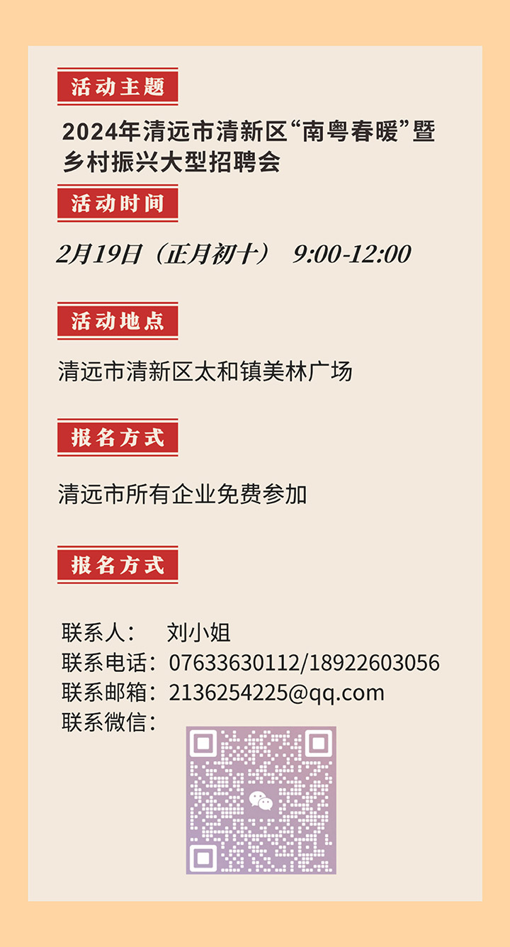 招聘會(huì)預(yù)告|2024年清遠(yuǎn)市清新區(qū)“南粵春暖”暨鄉(xiāng)村振興大型招聘會(huì)