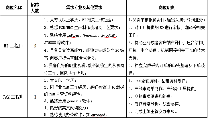 4、聯(lián)系郵箱:HR_ZP@fypcb.com